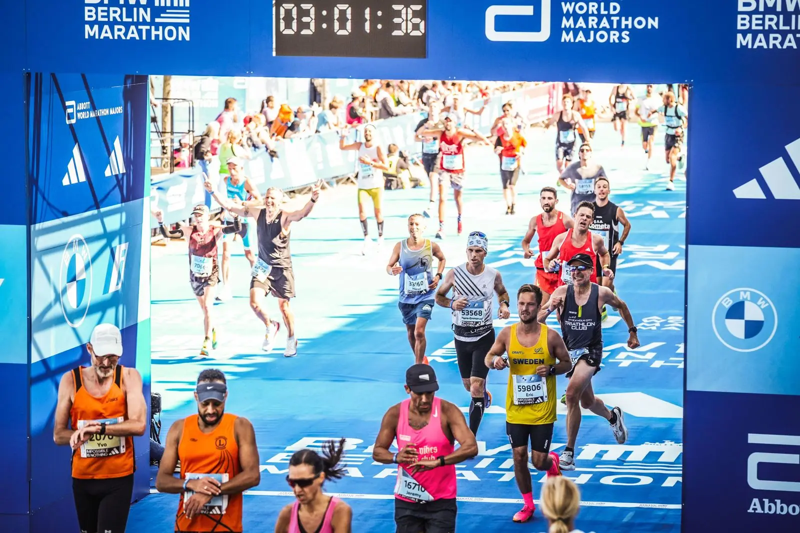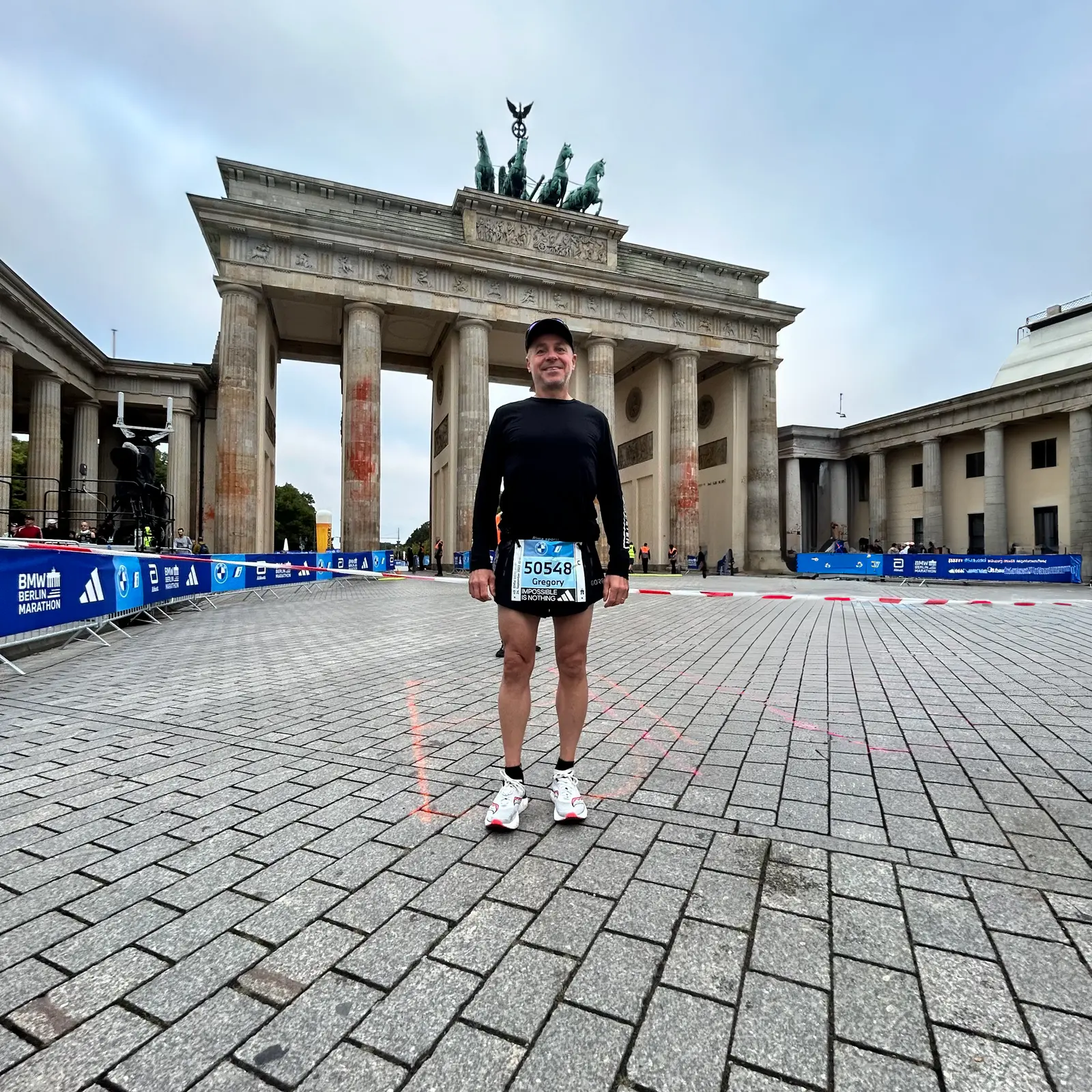 I saw the big camera boom at mile 24 and I had a huge smile on my face, knowing I had plenty of gas left in my legs and that I was going to hit my goal. It was here that I decided to turn up the pace a bit but my math was a bit off due to the fact that my watch was over a quarter mile off from the race markers. My watch was telling me I had a shot at under 2:56 but the course markers were telling a different story. Either way, I knew I was going sub 3. I pushed the pace over the last bit and finally reached the Brandenburg gate.