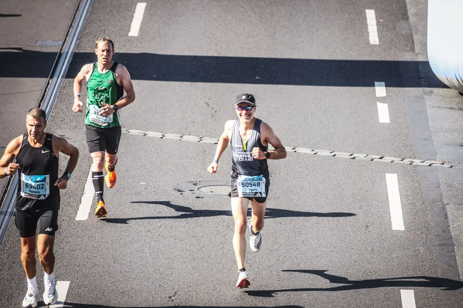 Throughout most of the race I would see Brian in front of me or just off to the side, he was also trying to run a sub 3, but it was best that we both ran our own race and not try to run together. Eventually we were side by side at one point and we shared a few words of encouragement before breaking off on our own again. Each 5 km marker came and went and the half way point was in sight. I told my wife I would be on the right hand side of the road around this area, so I would do my best to get to the right whenever I could. This proved to be really tricky with the amount of zig zagging required to navigate around the various runners on the course. In the first 10K, I had been passed by many runners, many of which went out too fast. Now I was the one passing them, which meant a great deal of zig zagging and always paying attention to not get stuck in their pace. In the end, I passed 1,200 runners in the last 30 km of the race. Unfortunately, all of this zigzagging added another half of a kilometer (.3 miles) to my distance according to my watch. This is the equivalent of 3 seconds per mile! Definitely something that I can improve on in future races.