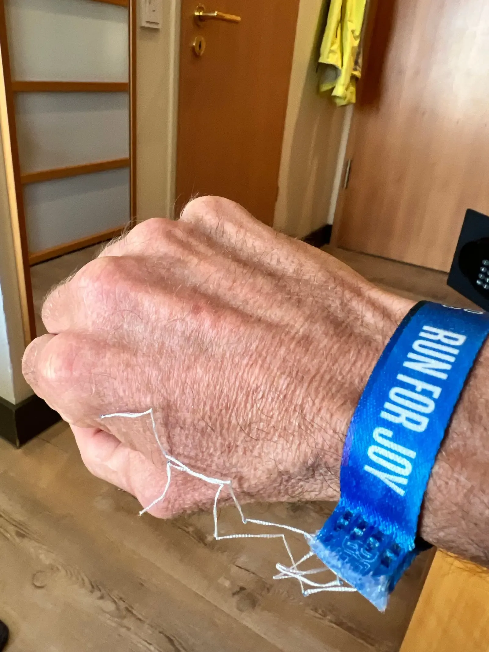 The halfway point hit and I was 50 seconds under my three hour pace. My legs felt amazing, ready to push the second half and finally get the negative split I was always aiming for. I also had a secret weapon for the second half of the race. For Berlin, every runner gets a non removable wrist band that allows them entry into all of the restricted areas of the race. When mine was cut the cut was not clean and I had these strands of string hanging off my wrist band. Instead of cutting them off, I left them because they reminded me of our dog Dexter and his long hair (he was a flat-coated retriever). I would have him with me all day and he would help me get through ANY adversity that I would face. I was going to do this with him and for him. When I needed energy or focus, I would look down at my wrist and talk to Dexter ( I am sure the other runners thought I was a bit crazy). I would choke up a bit each time I would do this, but my resolve grew stronger. This WAS going to happen.