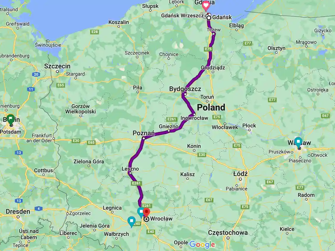 The train ride from Gdansk to Wroclaw